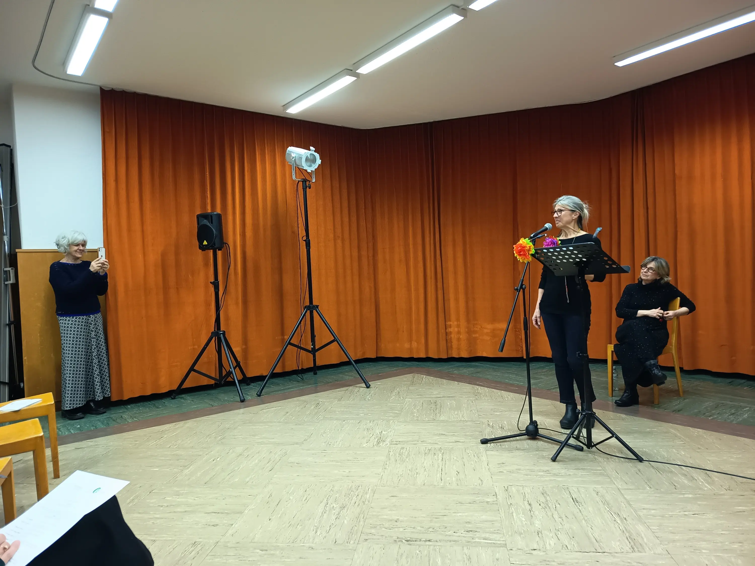 Nella sala comunitaria di Castasegna, preceduta da un saluto di Elena Preda per la Pgi, sezione Bregaglia, e di Anna Rusconi per la Casa dei Traduttori Looren, Rosaria Lo Russo ha messo in scena una performance inedita pensata appositamente per il Laboratorio italiano.
