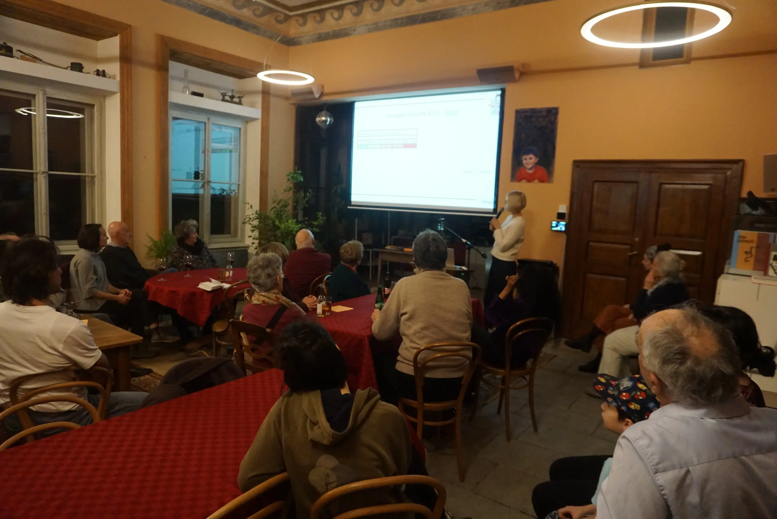 Rebecca Tiberini ha il ruolo, in Vita Bregaglia, di coordinare il gruppo che rivolge la propria attenzione alla fascia della terza età, gruppo con il quale ha già sviluppato diverse iniziative in Bregaglia volte a migliorare la qualità della vita delle persone con più di 65 anni. Ha dato il benvenuto ai presenti e ha ricordato il tema centrale, cioè come sostenere i membri della comunità bregagliotta che hanno bisogno di sostengo.