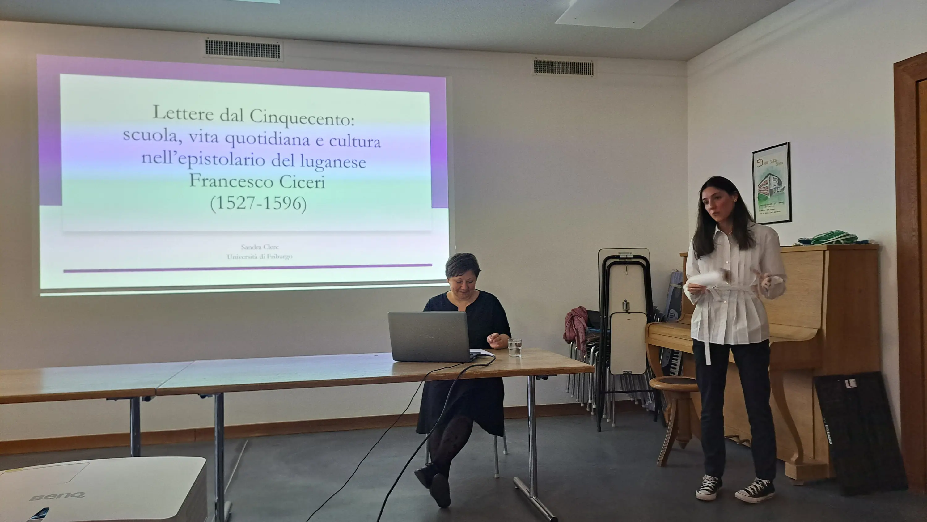 Il primo evento si è svolto giovedì sera, 16 aprile, presso la sala mensa della scuola di Stampa, dove Clerc ha tenuto una conferenza sull’epistolario del luganese Francesco Ciceri, figura di spicco del Cinquecento ticinese. Nato nel 1527 e morto a Milano nel 1596, Ciceri fu maestro, erudito e professore di retorica, nonché appassionato collezionista di libri. Il suo epistolario, composto da quasi mille lettere scritte tra il 1544 e la fine della sua vita, rappresenta una fonte preziosa per ricostruire la sua attività culturale e la fitta rete di relazioni che intratteneva.