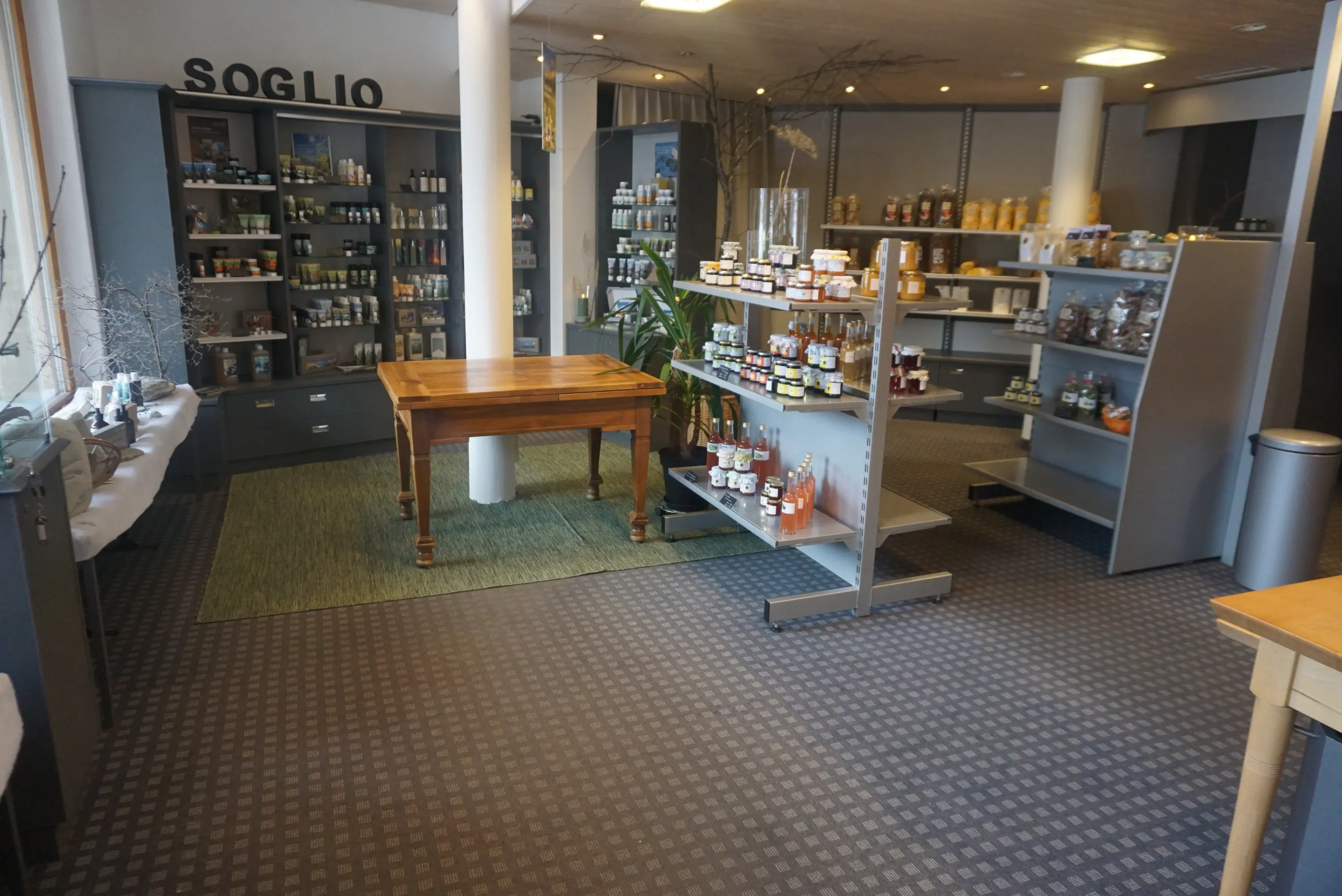 L’idea è quella di vendere i prodotti della zona, quindi insieme ai prodotti SOGLIO ci saranno molti altri prodotti fatti nel territorio, molti della Bregaglia, ma anche dall’Engadina. La gamma dei prodotti al momento non è cosi ampia, ma stiamo valutando le varie richieste dei clienti, e con il tempo in base a queste, verrà arricchita la scelta.