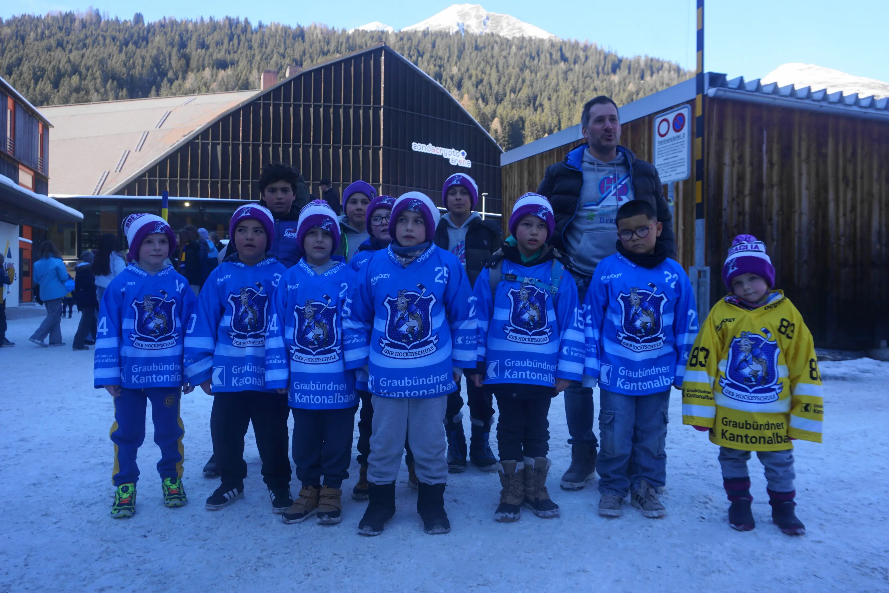 All’arrivo alla Zondacrypto-Arena, l’atmosfera era già carica di emozione. Tutti i bambini indossavano con orgoglio la maglietta azzurra GKB-HS, donata alla scuola dalla Banca Cantonale Grigione. Gli otto più piccoli hanno potuto assistere alla partita grazie ai biglietti offerti, vivendo da vicino lo spettacolo dell’hockey professionistico.